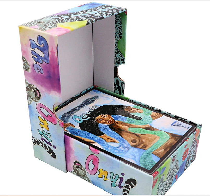 The inspiration behind this tarot card deck draws from various myths, religions, and folklore, interwoven with elements from the animal kingdom, resulting in a sacred and therapeutic card set. What sets this Tarot deck apart is that the majority of its cards vividly depict Black women—a heartfelt gift meticulously crafted by the author for their closest friend. The entire deck is infused with vibrant colors, empowering imagery, and the inspiration of friendship, radiating boundless energy and warmth.
